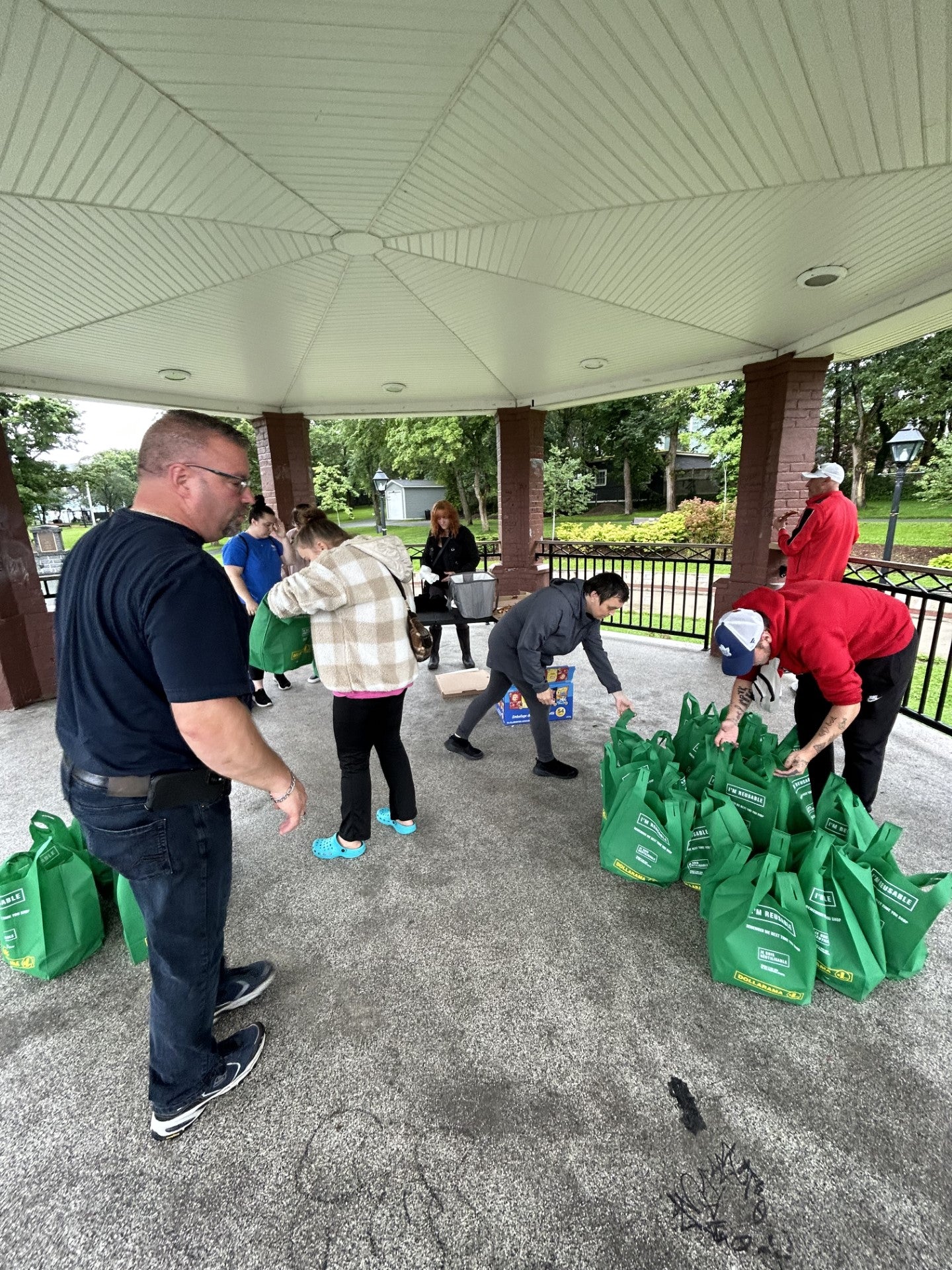 The team goes to a grocery store to pick up hygiene items, food items, socks/gloves and more, then packs the items into individual "Care Packages". Once the team has everything prepared, we walk together to the downtown part of our city to deliver!